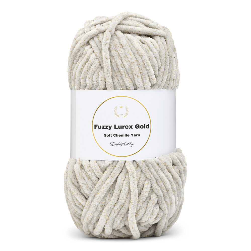 Fuzzy Chenille Gold Lurex von LindeHobby ist ein unglaublich weiches und dekoratives Chenillegarn mit eingewebtem Goldglitzer. Das Garn besteht aus Polyester und Lurex und hat eine voluminöse, samtige Struktur, die Ihren Projekten einen luxuriösen Touch verleiht. Es eignet sich sowohl zum Stricken als auch zum Häkeln und ist in mehreren Farben mit dem gleichen funkelnden Effekt erhältlich.