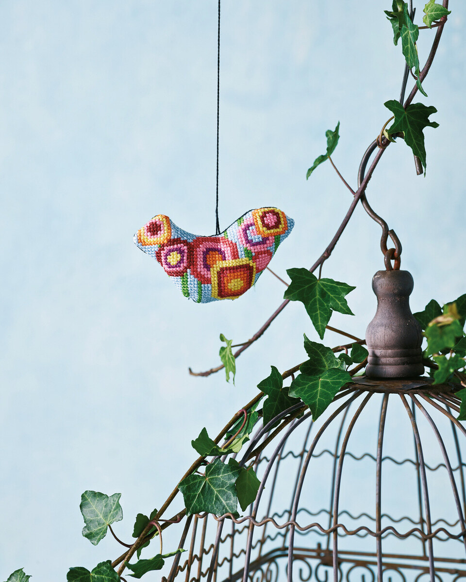 - Farbenfrohe Palette: Die Verwendung von 8 verschiedenen Farben von DMC Mouliné Garn macht das Design lebendig und einladend.