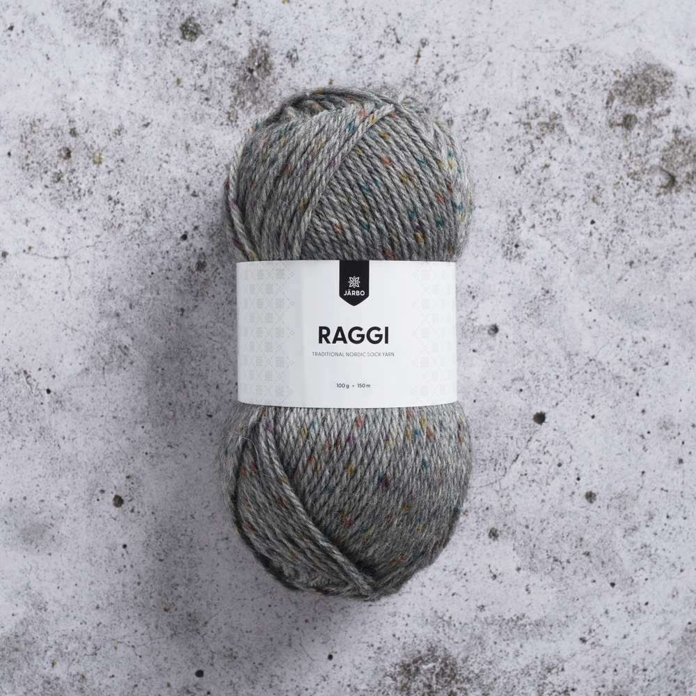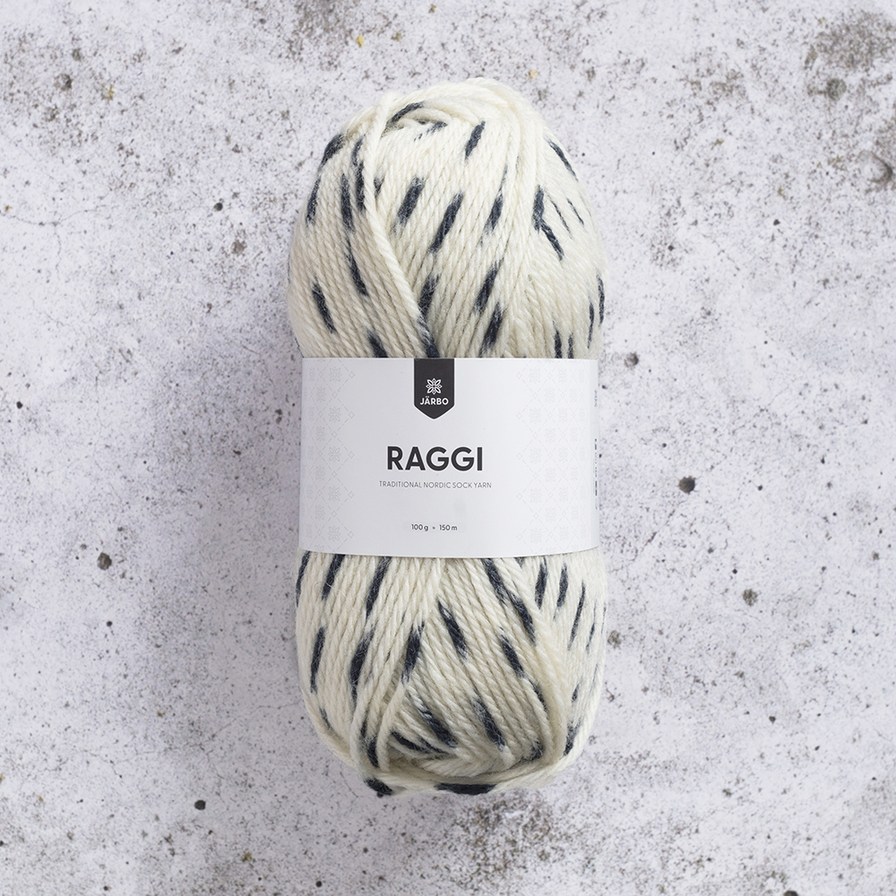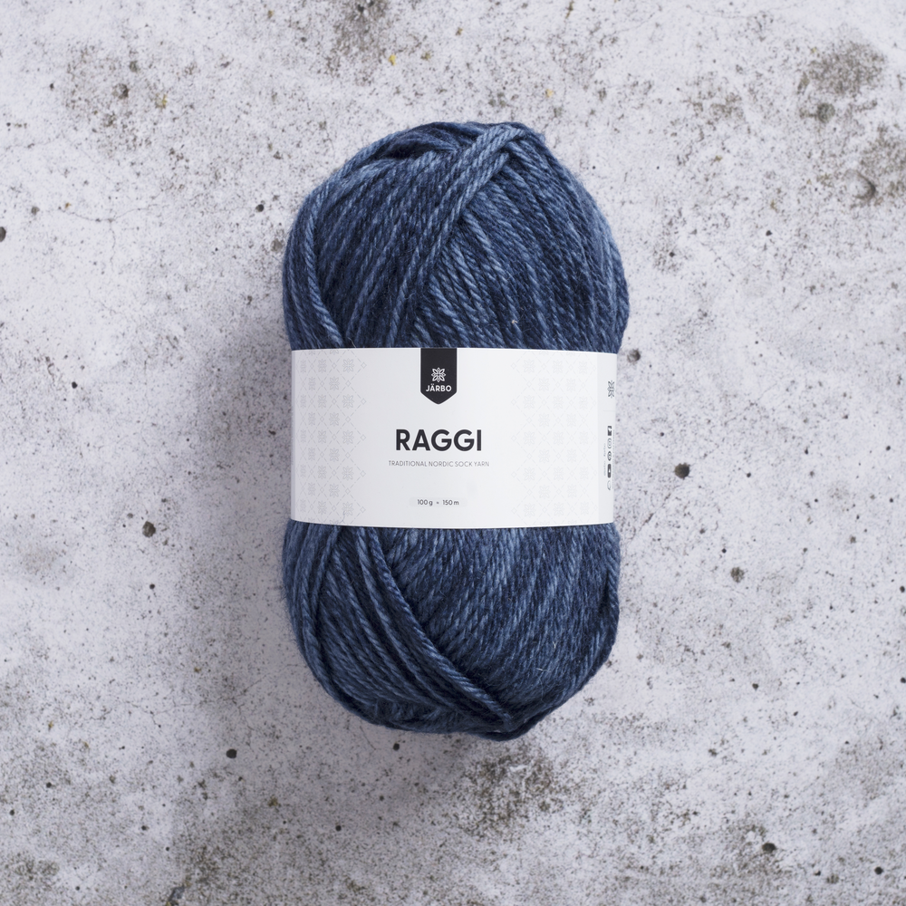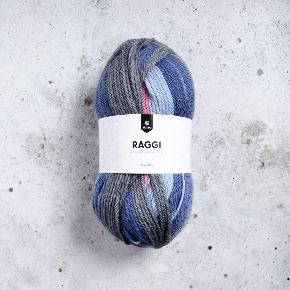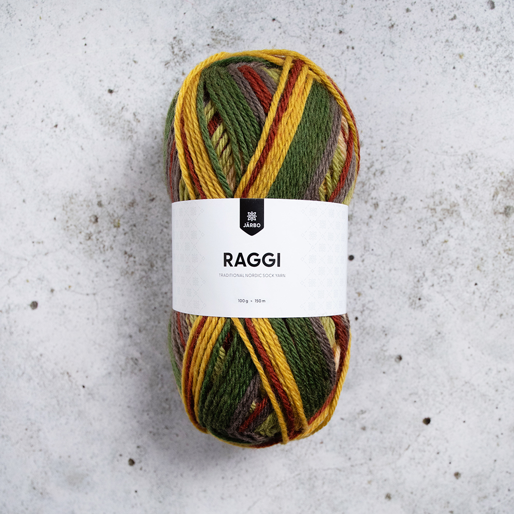 Raggi ist ein klassisches und strapazierfähiges Sockengarn von Järbo, hergestellt aus einer Mischung aus superwashbehandelter Wolle und Polyamid. Das Garn eignet sich sowohl für Socken als auch für warme Winterprojekte.