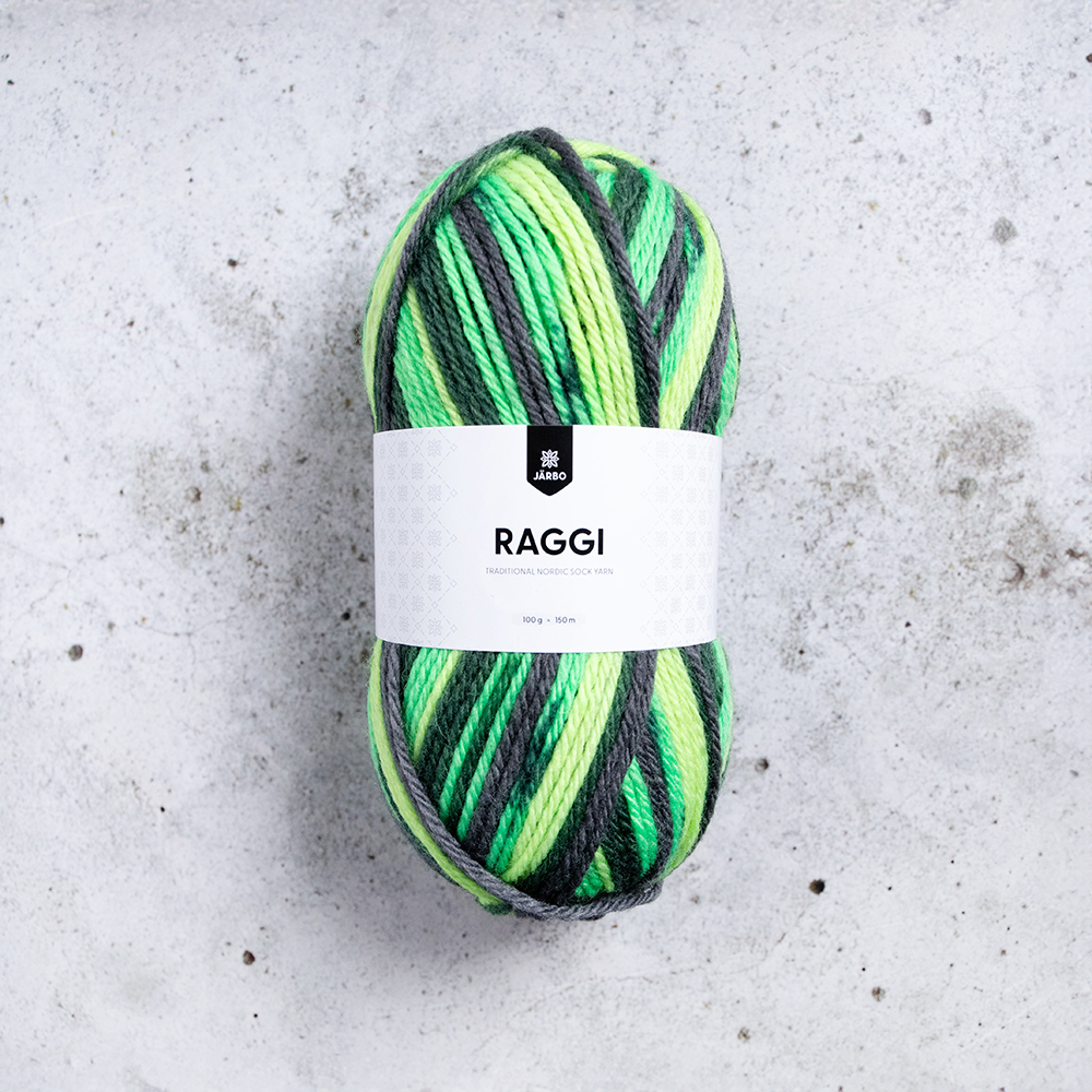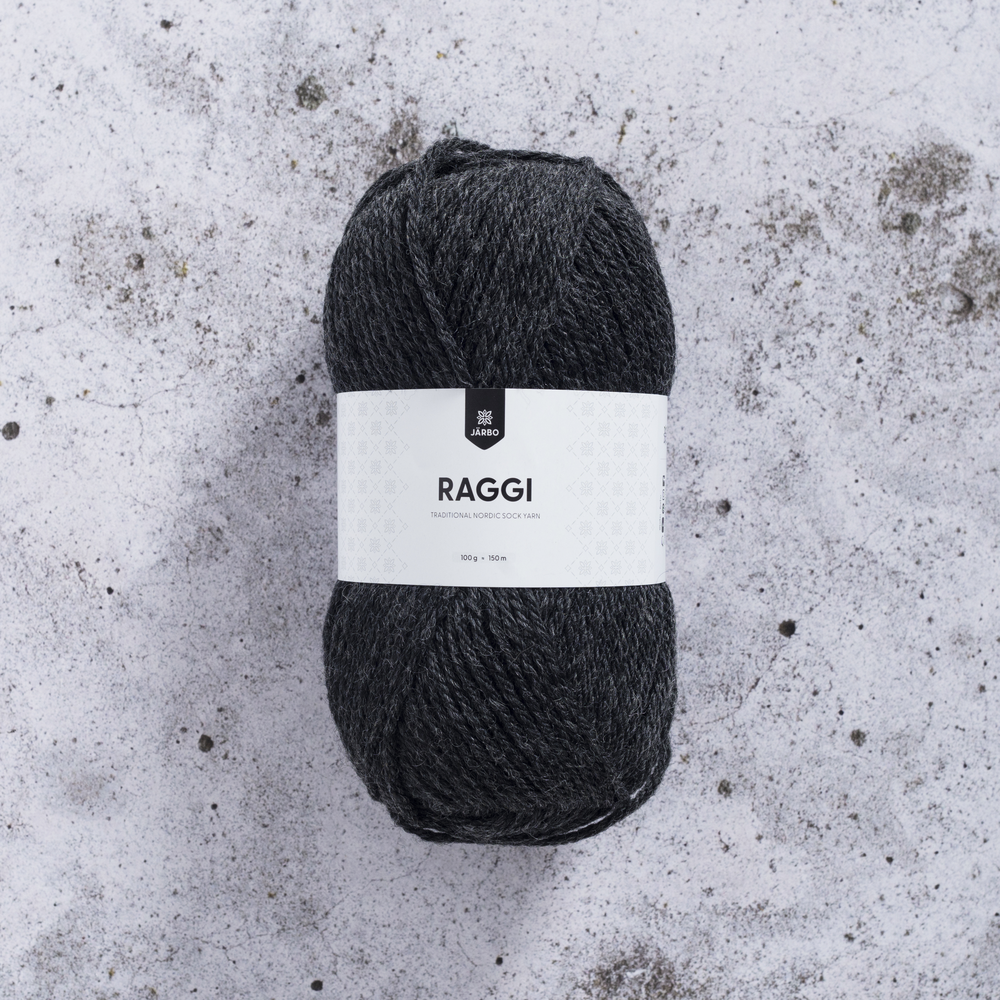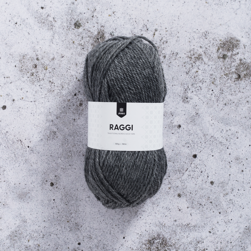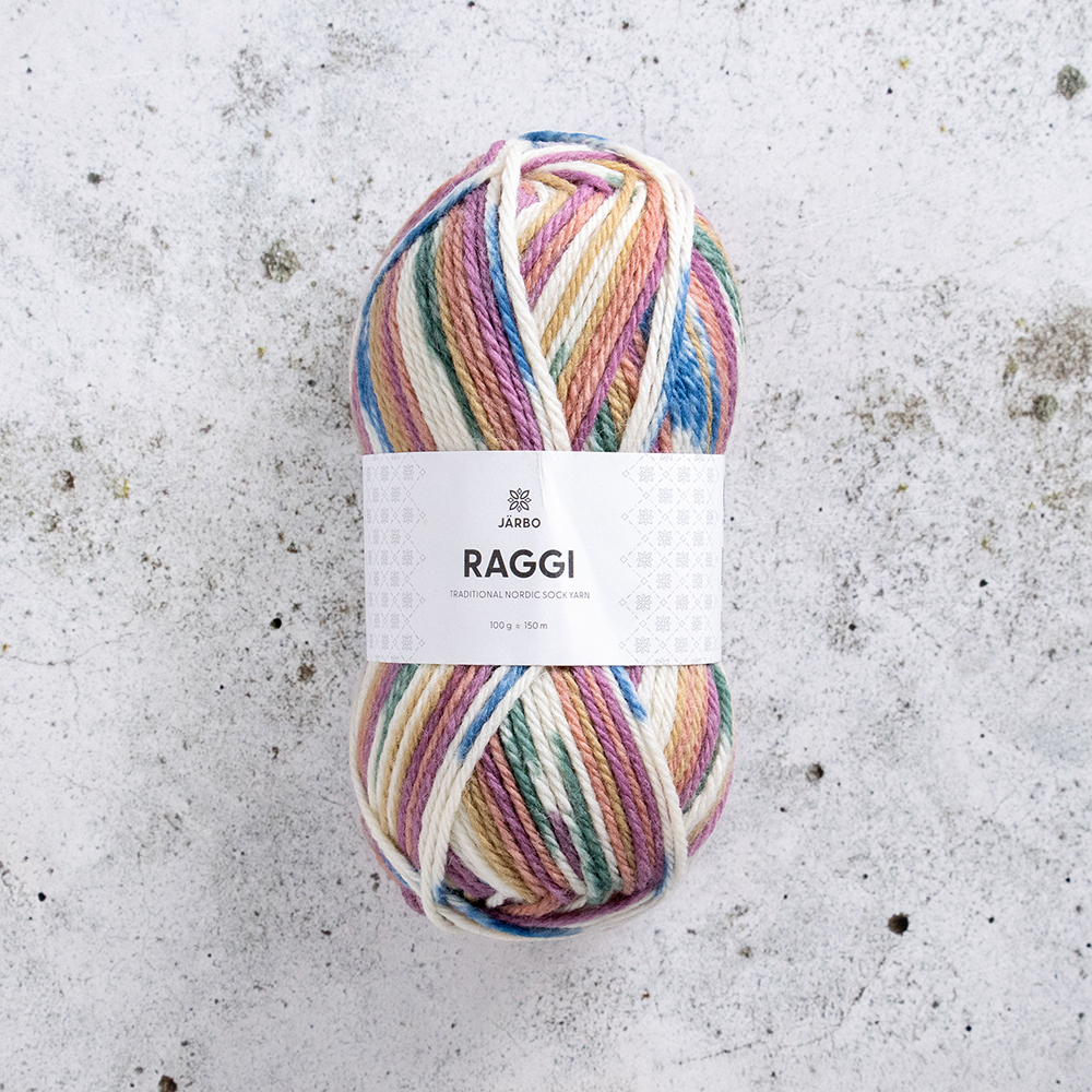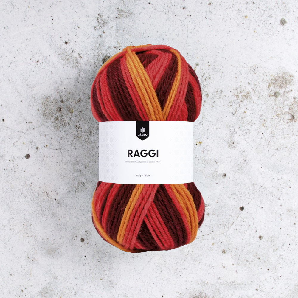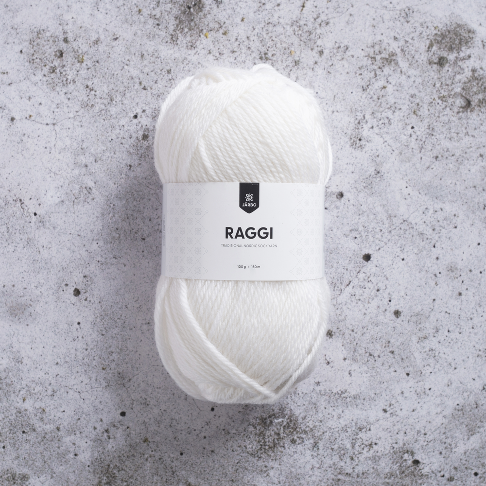 Raggi ist ein klassisches und strapazierfähiges Sockengarn von Järbo, hergestellt aus einer Mischung aus superwashbehandelter Wolle und Polyamid. Das Garn eignet sich sowohl für Socken als auch für warme Winterprojekte.