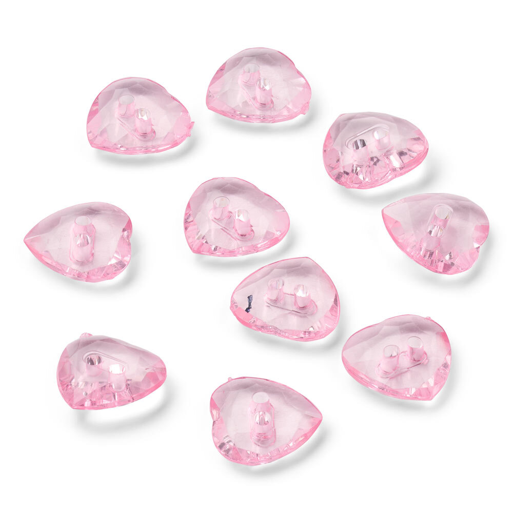 Kurz über das Produkt: Elegante rosa, herzförmige Kristallknöpfe zum Verschließen und Verzieren von Kleidung, Strickwaren und Accessoires.
