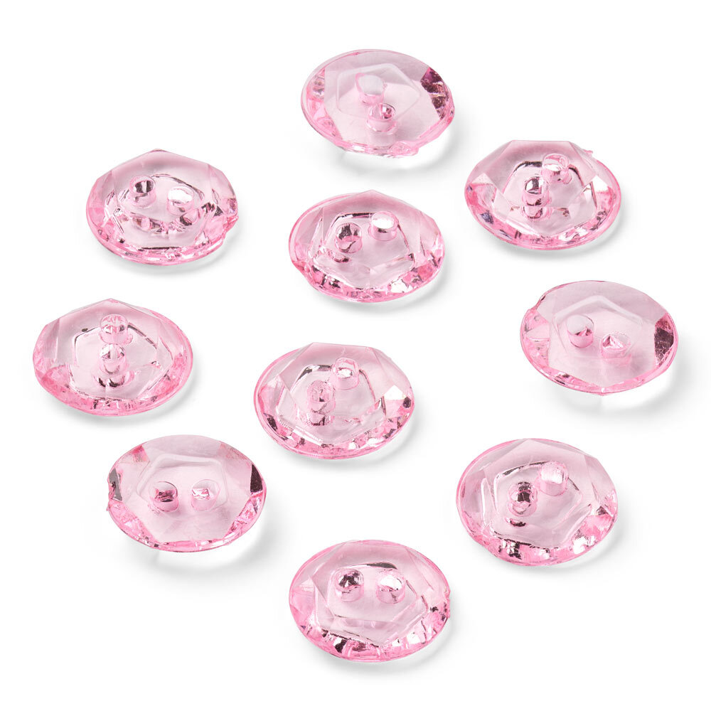 Diese rosa Kristallknöpfe von LindeHobby haben einen Durchmesser von 12 mm und werden im 10er-Pack geliefert. Sie bestehen aus klarem Kunststoff mit facettierter Oberfläche, die einen zarten Glanz und Farbeffekt erzeugt.