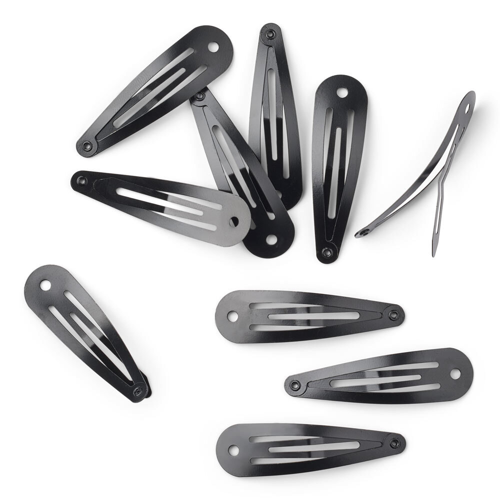 Ein Set schwarzer Schnappspangen aus robustem Metall – perfekt für kreative Projekte und personalisierte Haaraccessoires.